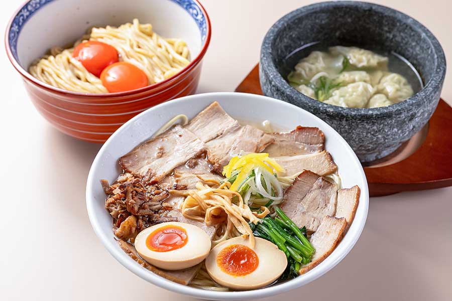 当店のラーメンの主役は麺!九州産の小麦粉を使い、店内の製麺機でその日に提供する分だけを製造。細麺ストレートで、心地よい噛み応えと鼻に抜ける小麦の香りがたまりません!合わせるスープは麺の美味しさがさらに引き立つ豚清湯。クリアでありつつ強い旨味・コクがあり、自慢のチャーシュー(通常のラーメン店より1.5倍のボリューム)との相性もバツグン!店内はゆったりした広さで休憩時間なく営業。お気軽にお立ち寄りください。